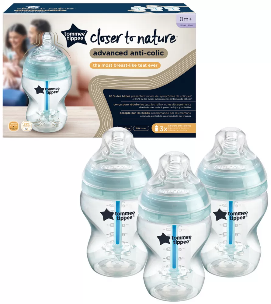 Kojenecká láhev Tommee Tippee ANTI-COLIC Advanced nabízí nejúčinnější řešení pro miminka se sklonem k břišním kolikám. Patentovaný antikolikový ventil zajišťuje dokonalý odvod vzduchu během krmení a umožňuje dítěti zcela plynulé sání bez polykání vzduchu.