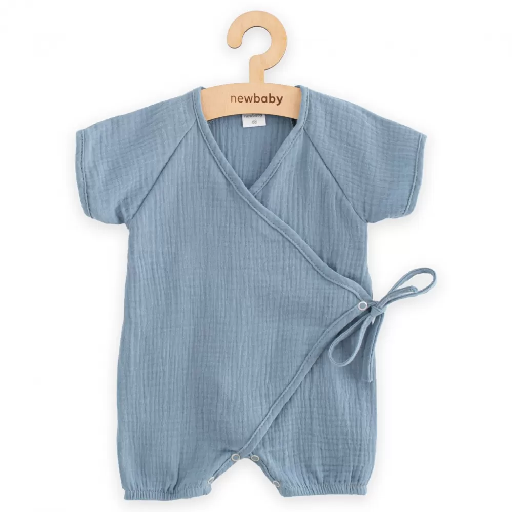 Stylový letní mušelínový overal s krátkým rukávem české značky New Baby. Zavinovací overálek s krátkým rukávem má praktické zavazování na boku na tkaničky, z vnitřní strany na cvoček a mezi nožičkama na cvočky což usnadní oblékání a přebalování. Na nohavičkách jsou jemné gumičky, které ale netlačí na nožičkách. Super stylový letní overálek rozzáří každé miminko.
