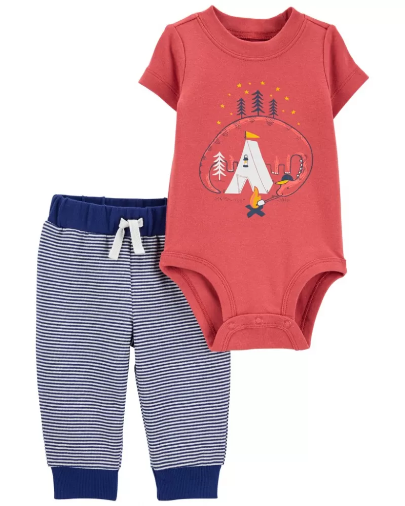 CARTER'S Set 2dílný body kr. rukáv, tepláky Dino Stripes kluk 3m