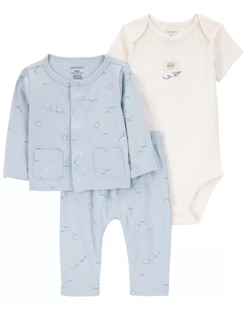CARTER'S Set 3dílný mikina, body kr. rukáv, tepláky Blue Airplane kluk MFL NB/vel. 56