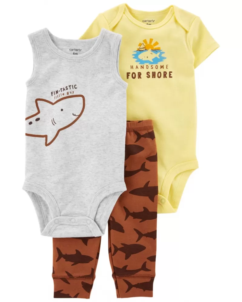 CARTER'S Set 3dílný tepláky, body kr. rukáv, body bez rukávů Brown Shark kluk 9m