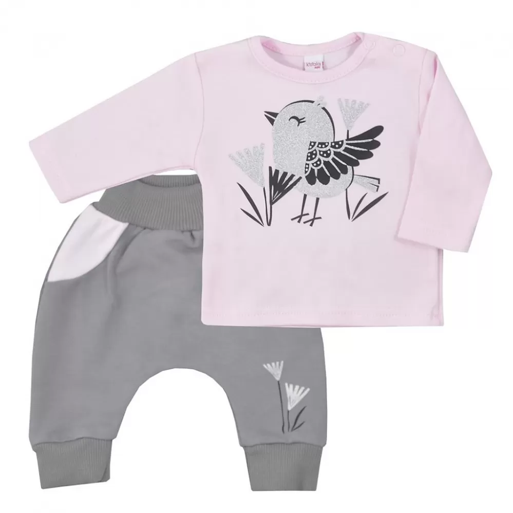 Koala Kojenecké bavlněné tepláčky a tričko Birdy šedé