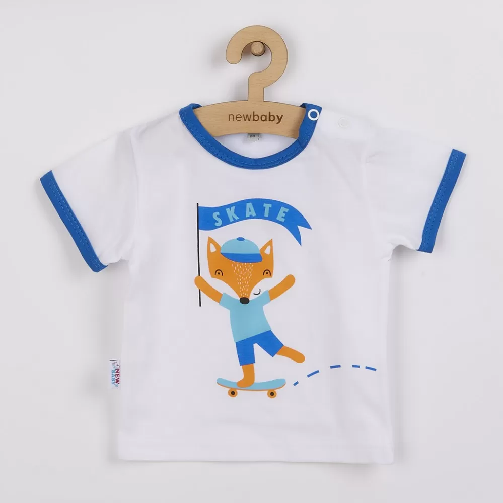 2-dílná bavlněná soupravička české značky New Baby Liška. Soupravička obsahuje tričko a kraťásky. Tričko s krátkým rukávem s barevným lemováním okolo krčku a rukávů je zdobeno veselým obrázkem lišky a nápisem SKATE. Tričko má zapínání na ramínku pro snadné oblékání. Pohodlné kraťásky jsou jednobarevné s gumičkou v pase. Soupravička je vyrobená s ohledem na potřeby malých dětí s velmi příjemňoučkého a jemného materiálu. Složení 100% bavlna