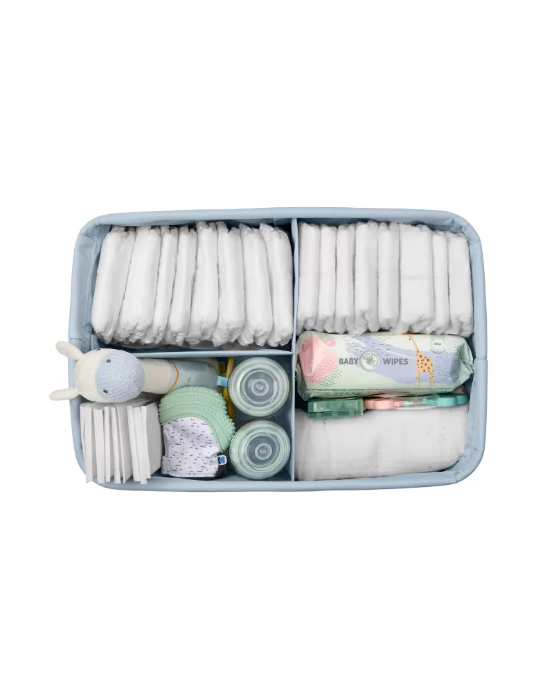 Praktický přenosný organizér v krásném textilním provedení s vnitřními přehrádkami vám pomůže přehledně uložit toaletní a přebalovací potřeby pro vaše miminko. Díky držadlům se snadno přenáší a můžete jej tak mít vždy po ruce kdekoli potřebujete. Odnímatelná přepážka umožnuje volbu členění vnitřního prostoru.