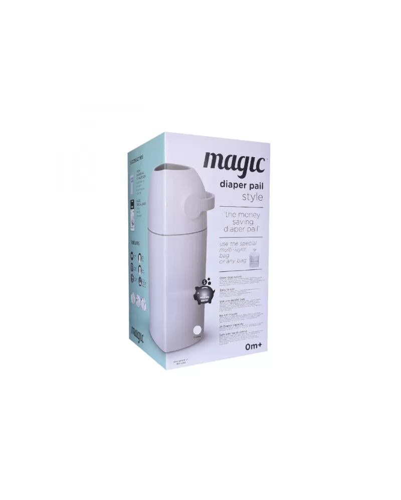 Patentovaný koš na pleny Magic poskytuje ochranu před nepříjemnými pachy a bakteriemi v dětském pokoji nebo kdekoli ve vašem interiéru. Použitou plenu snadno vložíte do koše bez jakéhokoli kontaktu s plenkami, které již v koši jsou. Otočením držadla plena propadne do koše a jeho otočením zpátky je koš opět připraven pro další použití. To vše jednou rukou, takže druhou můžete držet vaše miminko. Speciální systém těsnění udržuje zápach uvnitř koše.