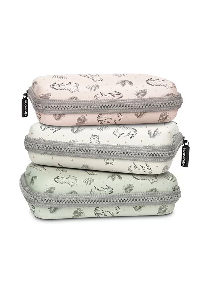 Praktická hygienická sada produktů pro péči o dítě řady Tigers značky Suavinex obsahuje základní potřeby pro každodenní péči o dětské vlásky, nehty i ústa. Všechny produkty jsou úhledně uložené v praktickém pouzdru na zip. V této sadě je šest základních pomůcek úhledně uspořádaných v praktické taštičce.