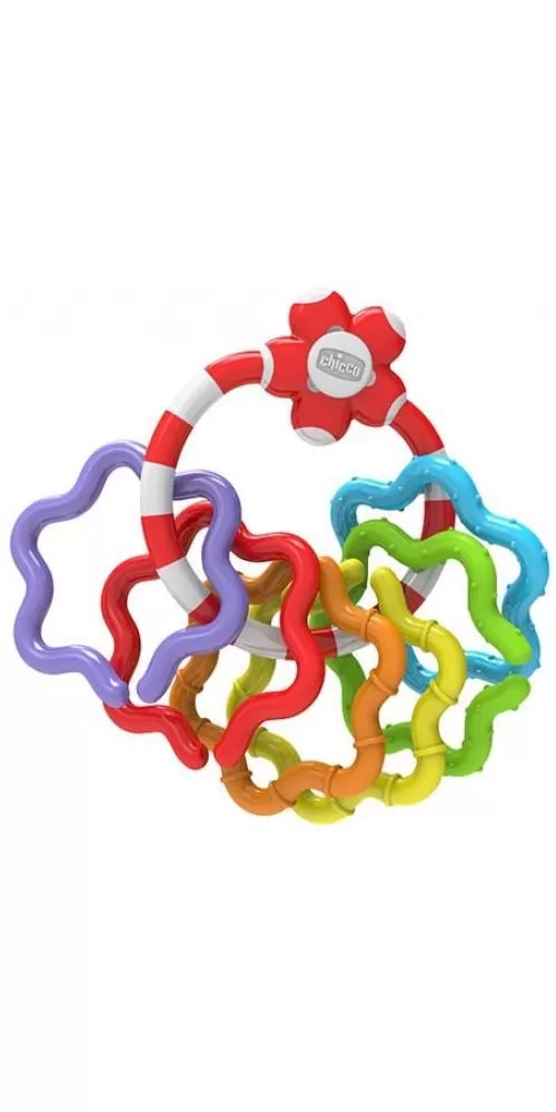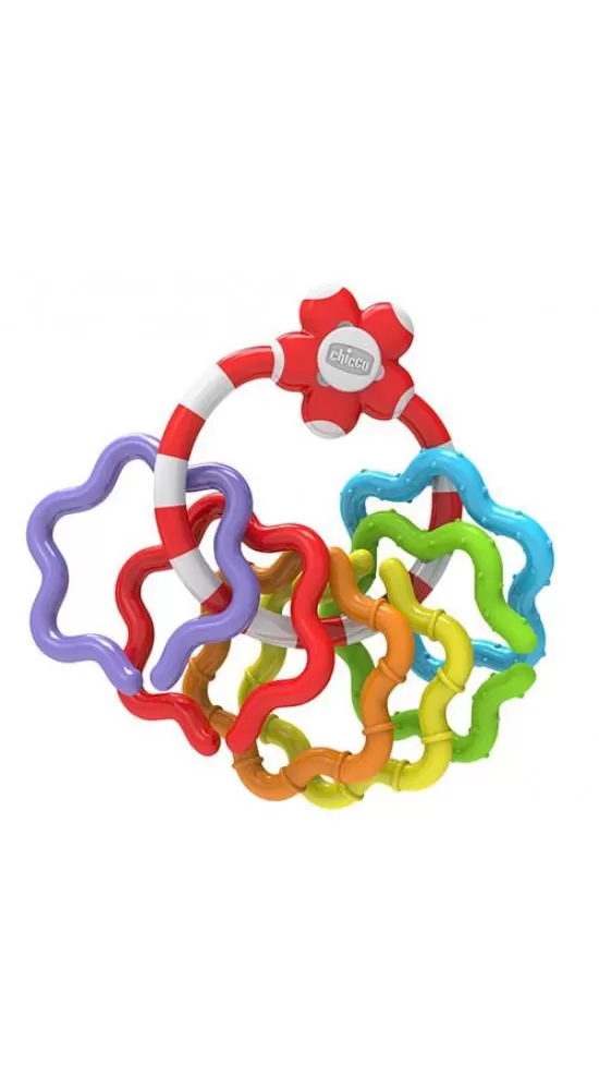 Barevné kousátko, které stimuluje smysly dítěte.