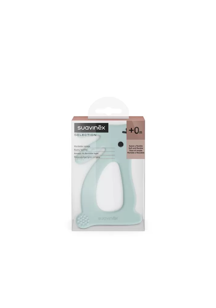 Silikonové kousátko ve tvaru králíčka s drobnými výstupky pro úlevu pro dětské dásně. Evoluční kousátka jsou bezpečná, ergonomická, lehká a velmi zábavná.