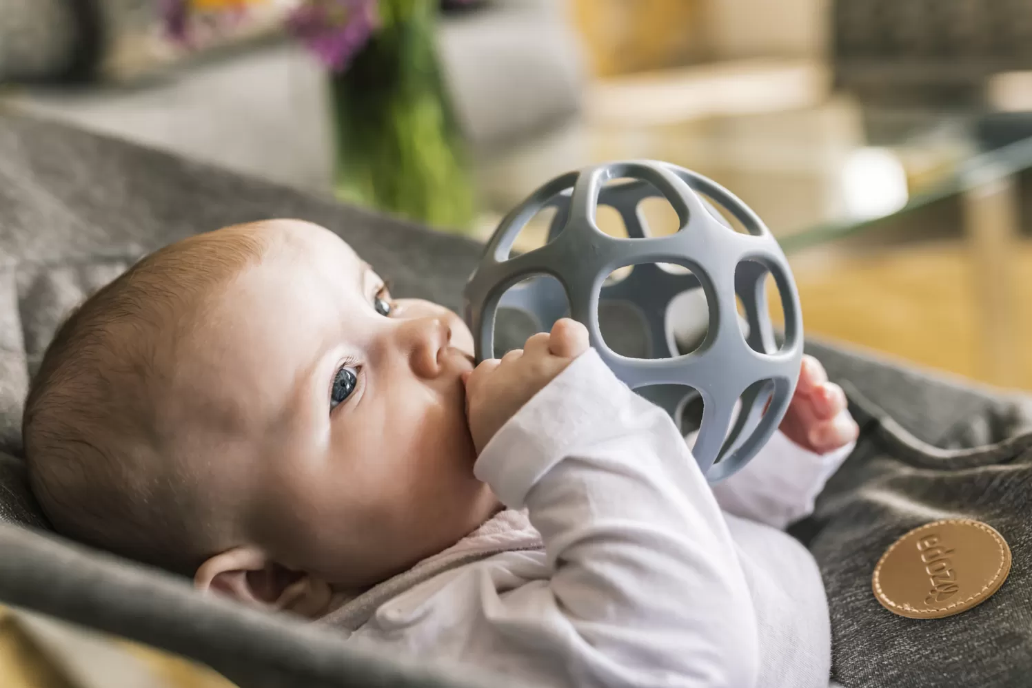 TIP: Silikonové kousátko Round bude perfektním dárkem při návštěvě miminka.