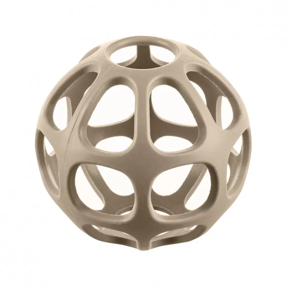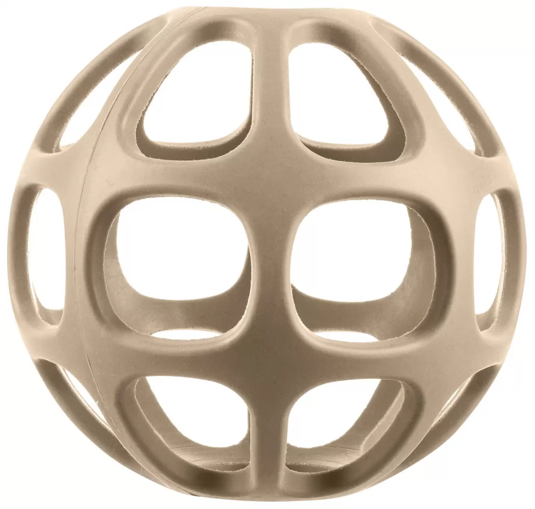 Kousátko je vyrobeno z bezpečného potravinářského silikonu, který je netoxický a odolný proti rozbití. Pro malé děti je silikon přirozenější než plast či kov. Design ve tvaru otevřeného míčku skvěle padne i do té nejmenší pěstičky a dítě jej snadno uchopí z každého úhlu. Kousátko díky svému tvarování stimuluje motoriku rukou, zejména koordinaci ruka-oko.