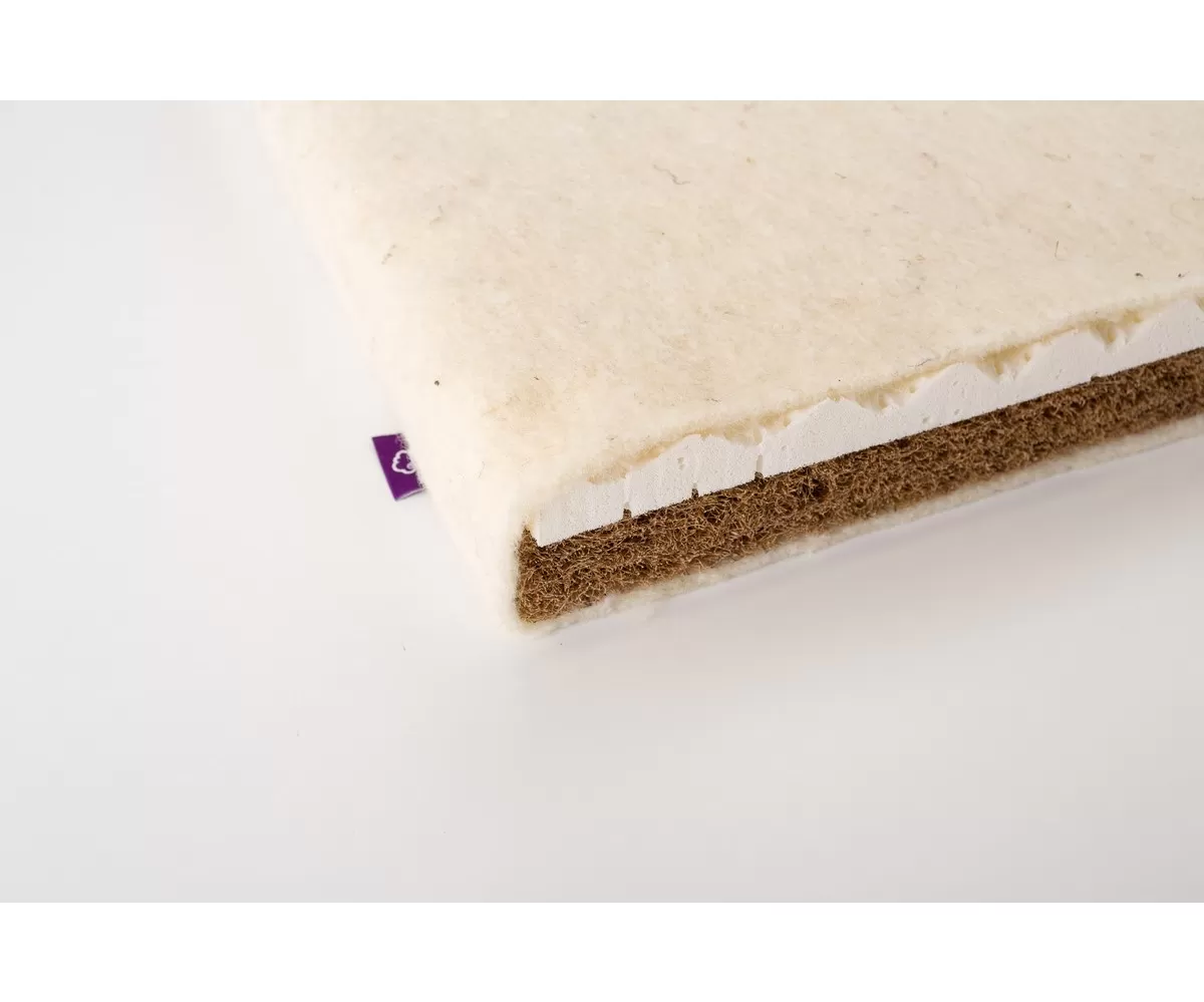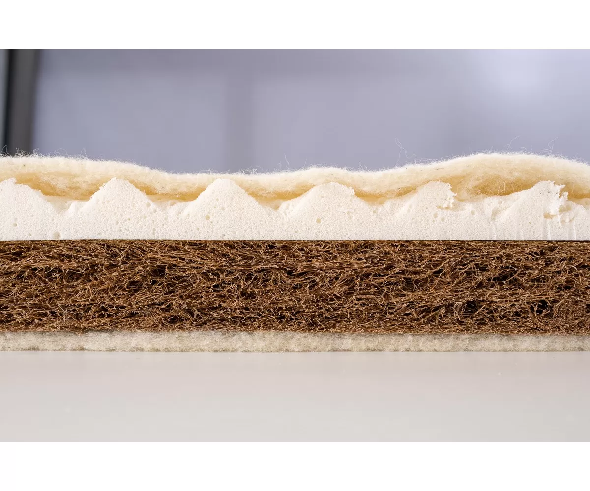 • vysoce kvalitní kokosová vlákna potažená latexem a obalená prodyšným vlněným rounem z kontrolovaného biologického chovu