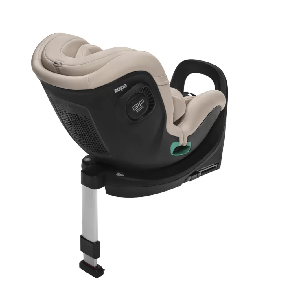 Od narození až do 19,5 kg chrání děti 5bodový bezpečnostní pás s kvalitní sponou Immi. V této fázi se autosedačka poutá pomocí isofixu a opěrné nohy. Děti mohou jezdit proti směru jízdy až do 105 cm. Díky otáčení lze od 76 cm zvolit také jízdu po směru. Až dítě povyroste, jednoduše přejdete na poutání 3bodovým pásem vozidla. Opěrná noha se sklopí pod autosedačku. Vaše dítě je perfektně chráněné od narození až do 135 cm.