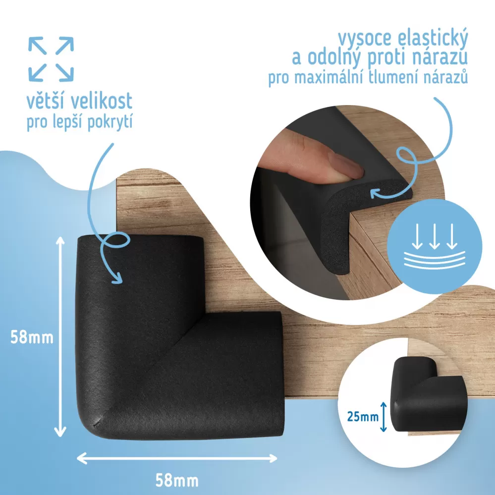 Pěnové chrániče rohů nábytku chrání děti před nárazy do ostrých rohů a hran. Jsou vyrobeny z měkké, pružné pěny, která absorbuje sílu nárazu, čímž snižuje riziko zranění.