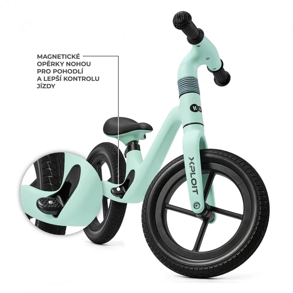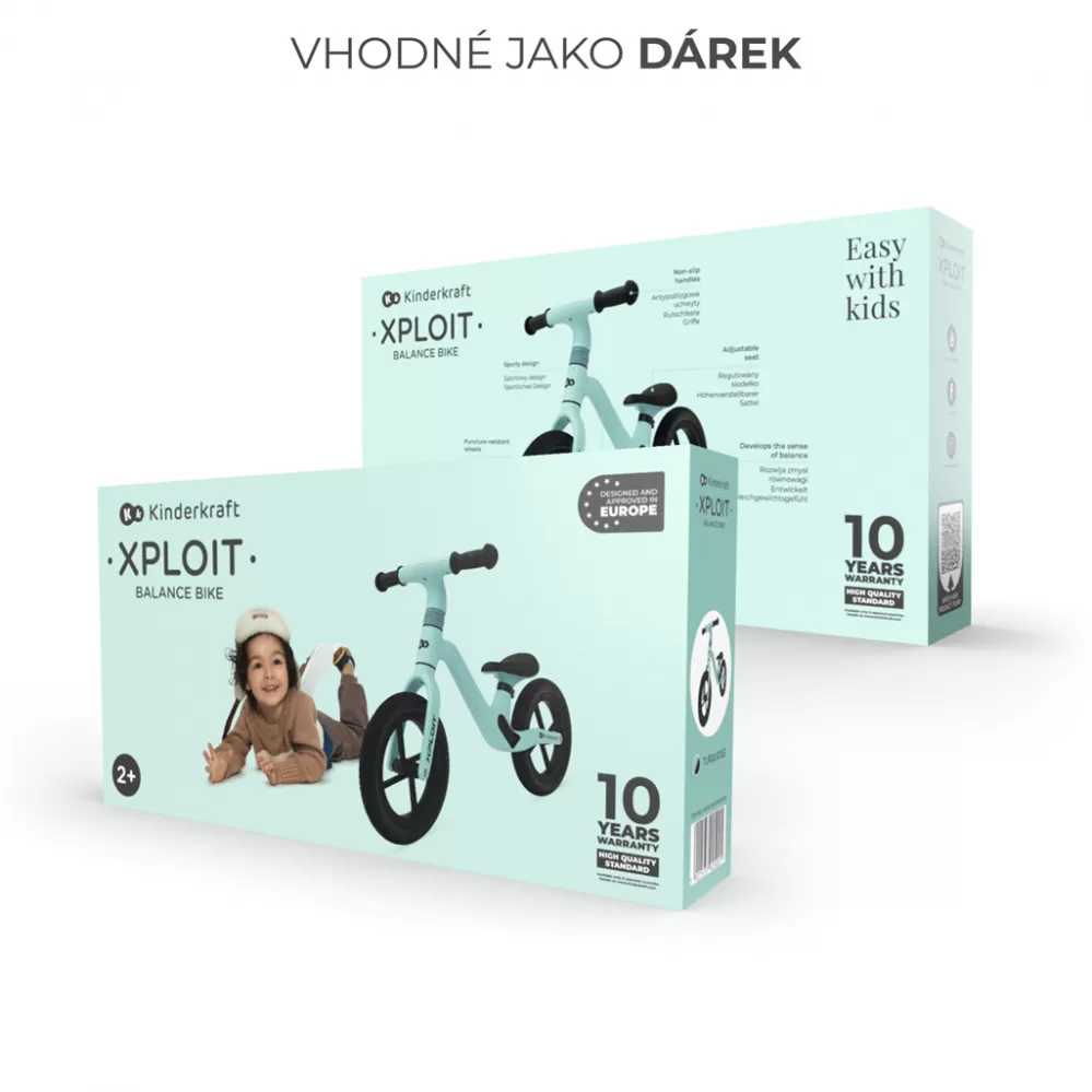 Jeho velkou výhodou jsou velká PU kola, odolná proti propíchnutí, jsou odpružená a mají dobrou přilnavost k povrchu, díky čemuž jsou vhodná jak na asfaltové, městské cesty, tak i na lesní cestičky. Mají sportovní ložiska 9ABEC, díky nim má dětské kolo plynulejší chod, což usnadňuje učení se jízdy. Dětské odrážedlo XPLOIT učí a zároveň baví: vaše dítě bude snáze získávat schopnost udržet rovnováhu a stabilitu a také ho připraví na učení jezdit na kole s pedály.