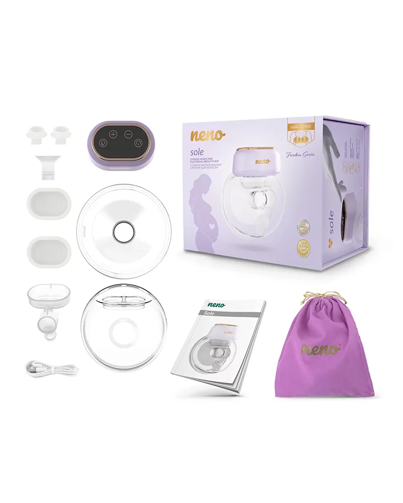 Neno Sole je inovativní bezdrátová handsfree odsávačka mateřského mléka díky které toho zvládnete opravdu hodně. Její lehká a malá konstrukce se vejde bez námahy do košíku podprsenky ke kojení a umožní Vám tak mít volné ruce. Přenosná odsávačka pastelové barvy je naprosto bezdrátová, má přehledný dotykový ovládací panel a velký objem, kam se vejde až 210 ml mléka. Odsávačka mléka funguje na základě tří fází s 8 úrovněmi nastavení. Má anatomický prsní štít ve tvaru prsu, který lze zmenšit z 24 mm na 20 mm.