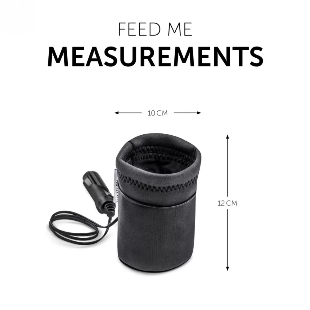 Tento kompaktní ohřívač lahví a skleniček je vyroben z robustního strečového neoprenu a jedinečného ohřívacího elementu. Materiál se přizpůsobí tvaru každé flašky a rychle a rovnoměrně ohřeje její obsah. Feed Me se díky svým rozměrům vejde do každého držáku nápojů v libovolném vozidle nebo jej lze pomocí věšáčku připevnit na přístrojovou desku. Přípojka s výkonem 12 V je vybavena kontrolkou stavu baterie a také integrovanou ochranou proti přehřátí. Pokrm se díky tomu ohřeje až o 50 % rychleji, než je tomu u běžných ohřívačů flašek. Přípojka do každého autozapalovače s výkonem 12 V.