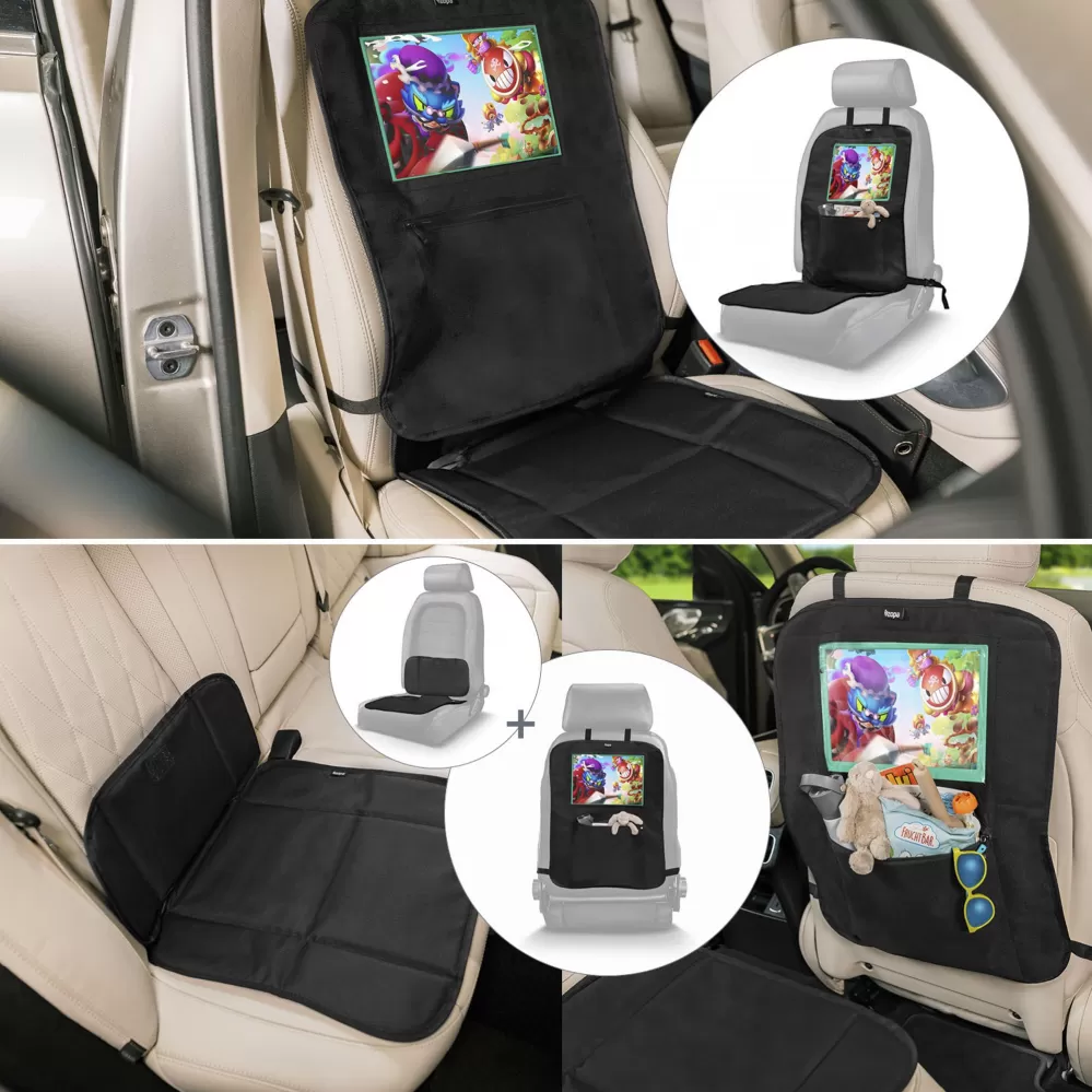 Ochranný potah Zopa poslouží po celou dobu, kdy dítě jezdí v autosedačce. Skládá se ze dvou částí, které se dají jednoduše přizpůsobit aktuálním potřebám. Spodní díl vždy slouží jako ochrana sedadla. Vrchní díl v první fázi, kdy dětí jezdí protisměru jízdy, chrání zádovou opěrku sedadla před ušpiněním od dětských bot a díky držáku na tablet pomáhá zabavit dítě během cesty.