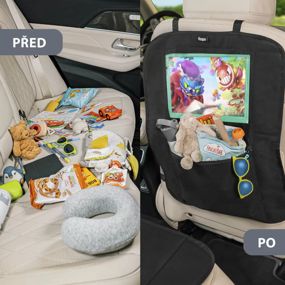 Když dítě vyroste, lze zadní díl oddělit a využít ho jako kapsář s držákem na tablet. Kapsář se připne na hlavovou opěrku sedadla před řidičem. Děti si do něj mohou schovat vše, co budou během cesty potřebovat.