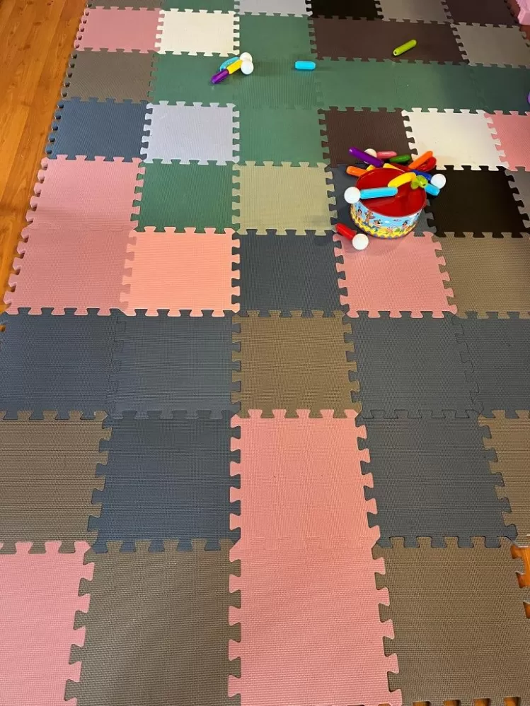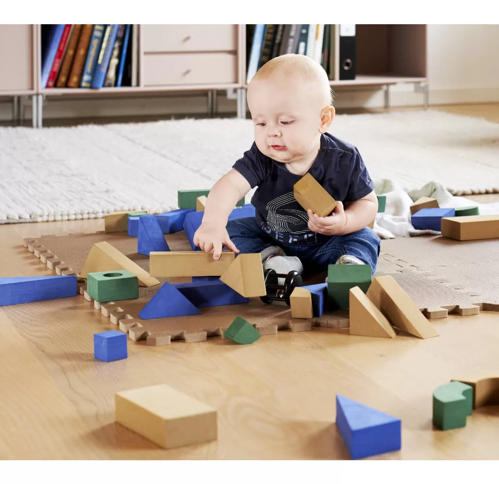 Pěnová podlaha je vyrobena z extra husté pěny tloušťky 1,4 cm, takže si na ní děti mohou hrát a bezpečně spadnout. Podložka izoluje plazící nebo batolící se dítě před chladem, hlukem a nárazem. Velmi vhodné přes dlažbu nebo plovoucí podlahu. Podložka může být alternativně sestavena také do čtvercové krabice. Pokud máte více podložek, můžete vytvořit další krabice, které dítěti mohou skládat. Spousta možností pro aktivní hru.