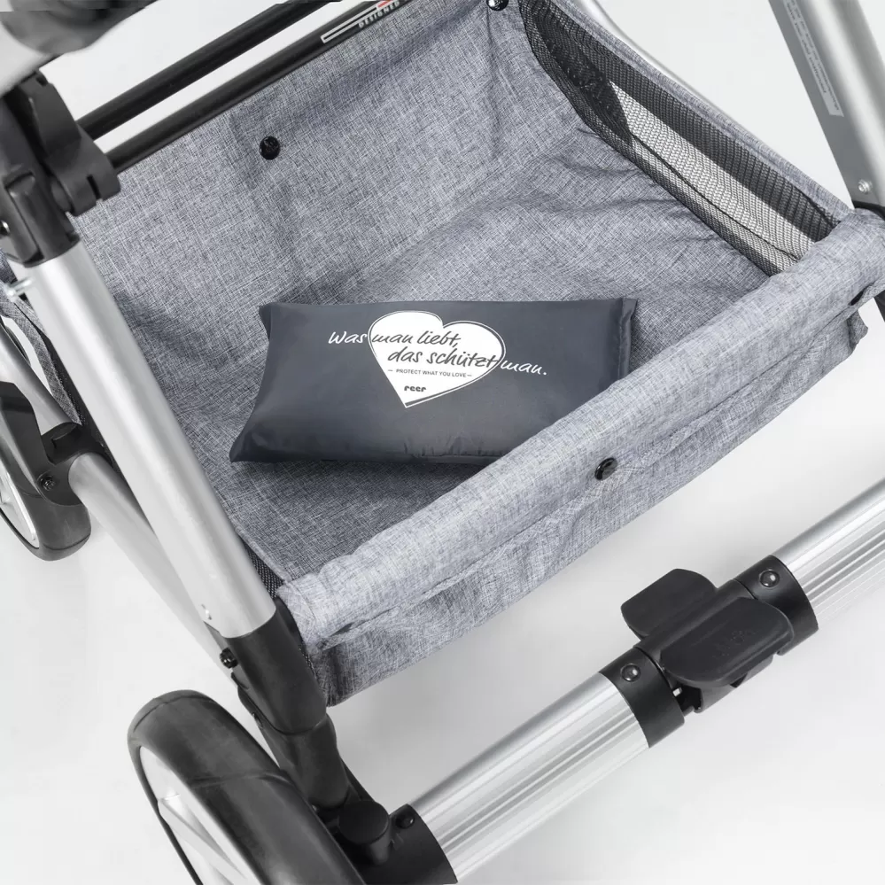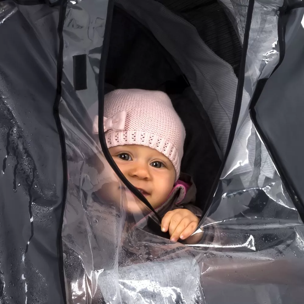 Pokud vás překvapí déšť, sníh nebo silný vítr, poskytuje pláštěnka rychlou a bezpečnou ochranu pomocí suchých zipů a upevňovacích háčků. Tak je váš malý spolujezdec v suchu a chráněný.