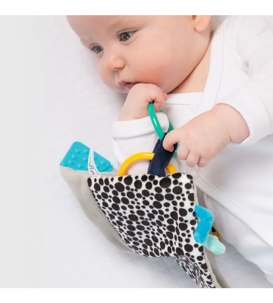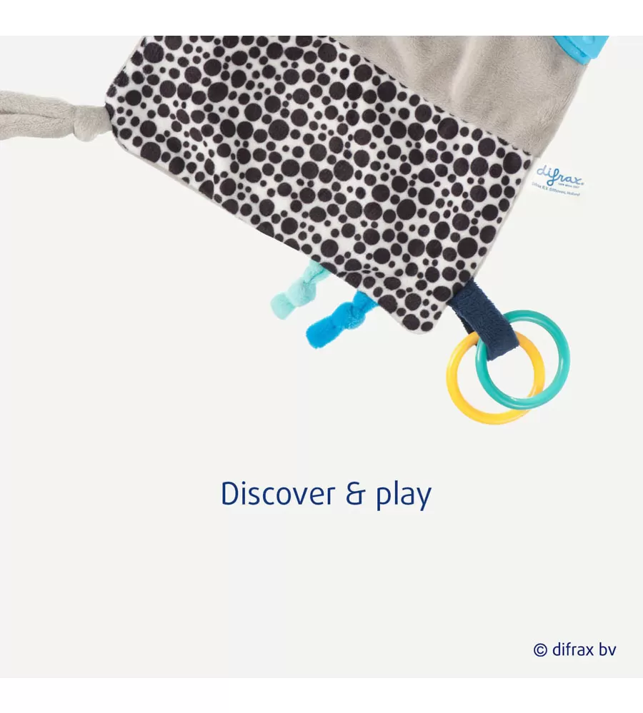 Muchláček Kamarád od Difraxu je z jemného plyše s nápaditým povrchem a kreativními komponenty. Jednotlivé části Kamaráda (vyrobené pokaždé z jiného materiálu, v rozdílných barvách, s odlišnými funkcemi apod.) miminko natolik uchvátí, že se jím zabaví na dlouhé hodiny. Zároveň se při hraní s Kamarádem rozvíjí i jemná motorika miminka a kousátko po stranách muchlátka uleví miminku při nelehkém období růstu zoubků. Muchláček dodává miminku pocit jistoty a pohodlí a šustivé zvuky jej jistě zaujmou.