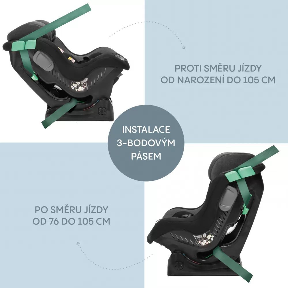 • Instalace pomocí 3bodového pásu vozidla