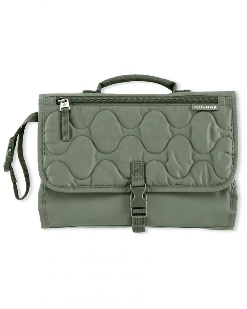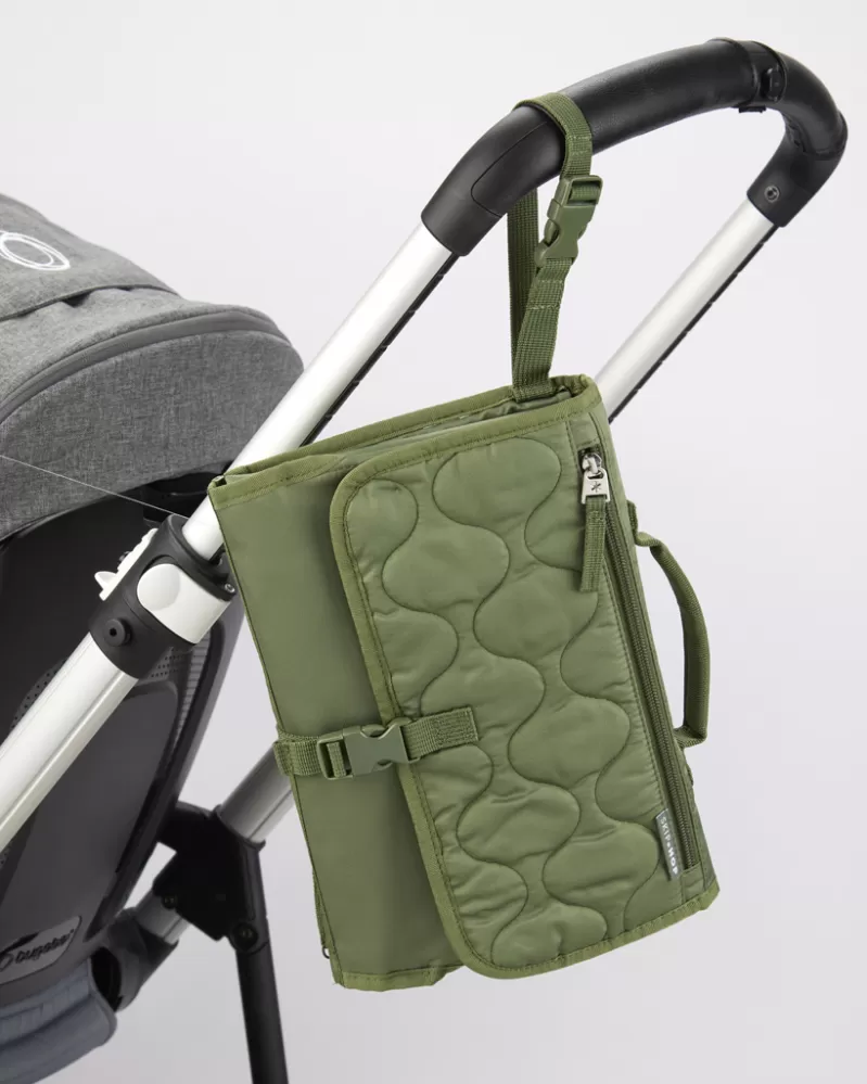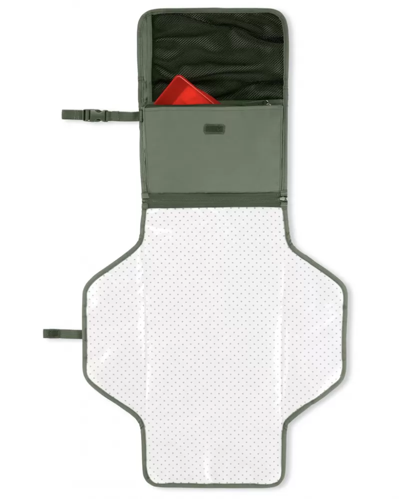 Dokonalá pomůcka na přebalování usnadňuje přebalování dětí bez ohledu na to, kde se právě nacházíte. Set obsahuje měkkou podložku na přebalování s možností odepnutí pomocí zipu a samostatnou taštičku na hygienické potřeby jako pleny, ubrousky, krém. Do velké síťované kapsy se vejdou až čtyři pleny plus krémy a další potřebné věci. Přední kapsa na zip je ideální na klíče, mobilní telefon nebo jiné osobní věci. Pronto jednoduše vložte do tašky, připněte si jej na zápěstí nebo jej připněte na kočárek a vyražte!