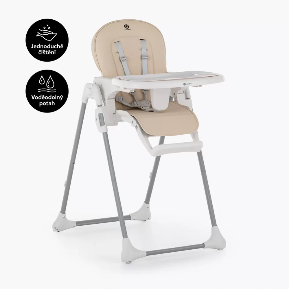Balení se skládá z potahu a podnosu Dětská židle GUSTO s vyměnitelným potahem je inovativní výrobek na trhu, který nejenže zajišťuje maximální bezpečnost a funkčnost pro děťátko a rodiče, ale myslí také na ochranu naší planety před příliš rychlou likvidací nepoškozených výrobků. Díky možnosti dokoupení náhradního potahu lze židličku jednoduše proměnit z univerzální na holčičí, chlapeckou nebo ji přizpůsobit Vašemu interiéru. Je to také skvělý způsob, jak základní konstrukci používat delší dobu. Dětskou židli může využít další děťátko v rodině nebo může začít svůj nový život v jiné rodině. Stačí jen koupit nový potah, díky kterému bude židle vypadat jako nová. Péče o životní prostředí, kterou jsme při tvorbě této židle zohlednili, nezastínila nejdůležitější aspekty výrobku – byl totiž navržen tak, aby co nejbezpečněji zlepšil každodenní život děťátka i rodičů. Židle má všechny funkce, které usnadňují každodenní krmení: Lze ji snadno sundat a vyčistit, má 5-bodové bezpečnostní pásy, nastavitelnou opěrku zad, nastavitelnou opěrku nohou, nastavitelnou výšku, dvě polohy pro podnos s horní částí, kterou lze mýt v myčce nádobí. Stabilní konstrukce židle zajistí bezpečnost vašeho dítěte bez ohledu na to, jak je aktivní nebo pohyblivé. Vysoce kvalitní provedení, promyšlená konstrukce, moderní a originální design a kompaktní skládání jsou nadčasové vlastnosti, které zajistí pohodlí pro vaše dítě od okamžiku, kdy se naučí sedět. Vlastnosti: • Odnímatelný potah z eko-kůže, který lze dokoupit a vyměnit; je odolný vůči zašpinění a snadno se udržuje v čistotě, • 2-stupňové nastavení vzdálenosti mezi podnosem a dítětem, • široký odnímatelný podnos sestávající ze spodní a horní části, přičemž horní profilovanou část s místem na sklenici lze mýt v myčce nádobí, • jednoduchost a rychlost montáže a demontáže, • stylový design a krásné barvy, které lze snadno přizpůsobit každému interiéru, Materiál: PU voděodolná eko-kůže Podrobnosti: • Navrhovaný věk dítěte - od 6 do 36 měsíců • Maximální hmotnost dítěte - do 15 kg • Hmotnost židle s podložkou a podnosem - 6,25 kg • Splňuje normu EN14988:2017 +A1:2020 Rozměry: o šířka sedáku: 32,5 cm o výška sedadla: 43 cm o celkový rozměr židle: 74 x 54 x 100 cm o rozměry podnos: 40 x 23 cm