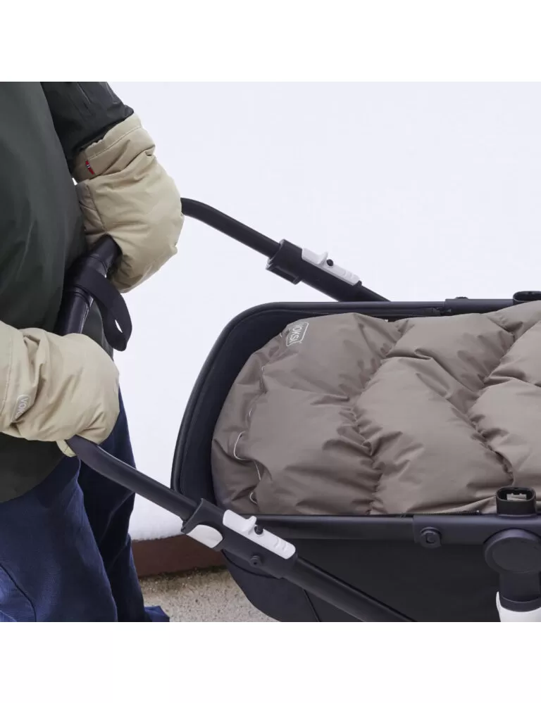 Rukavice do kočárku se dodávají v jedné velikosti, která se hodí na různé velikosti rukou. Jsou ideální na procházky v chladnějších dnech. Palčáky zůstávají uchycené na madle kočárku pomocí suchého zipu, takže se ruce snadno vyndávají.