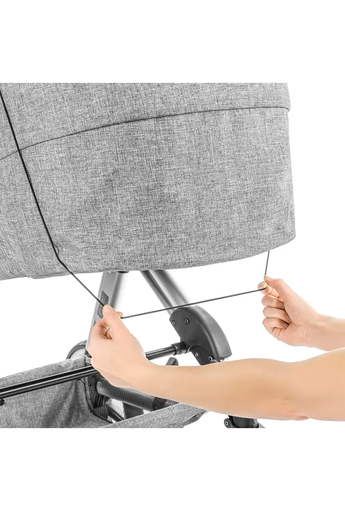 Celoobvodová guma a upevňovací popruhy umožňují flexibilní použití na kočárcích i protisměrných kočárcích. Pro připevnění se plachta položí přes stříšku, gumička se stáhne pod vaničku a popruhy se připevní k madlu.