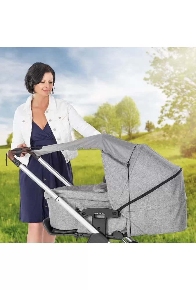 Clona téměř zcela zakrývá volnou plochu kočárku a poskytuje tak dostatečný stín téměř v každé poloze slunce. To zabraňuje zahřívání vnitřku kočárku a zajišťuje příjemné klima uvnitř. Zatemnění zároveň umožňuje příjemný výlet bez oslnění.