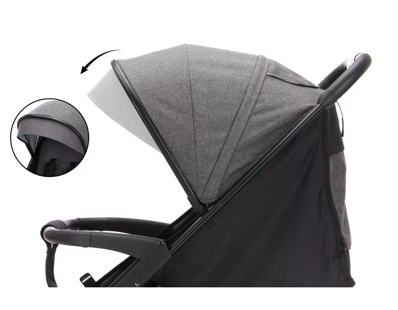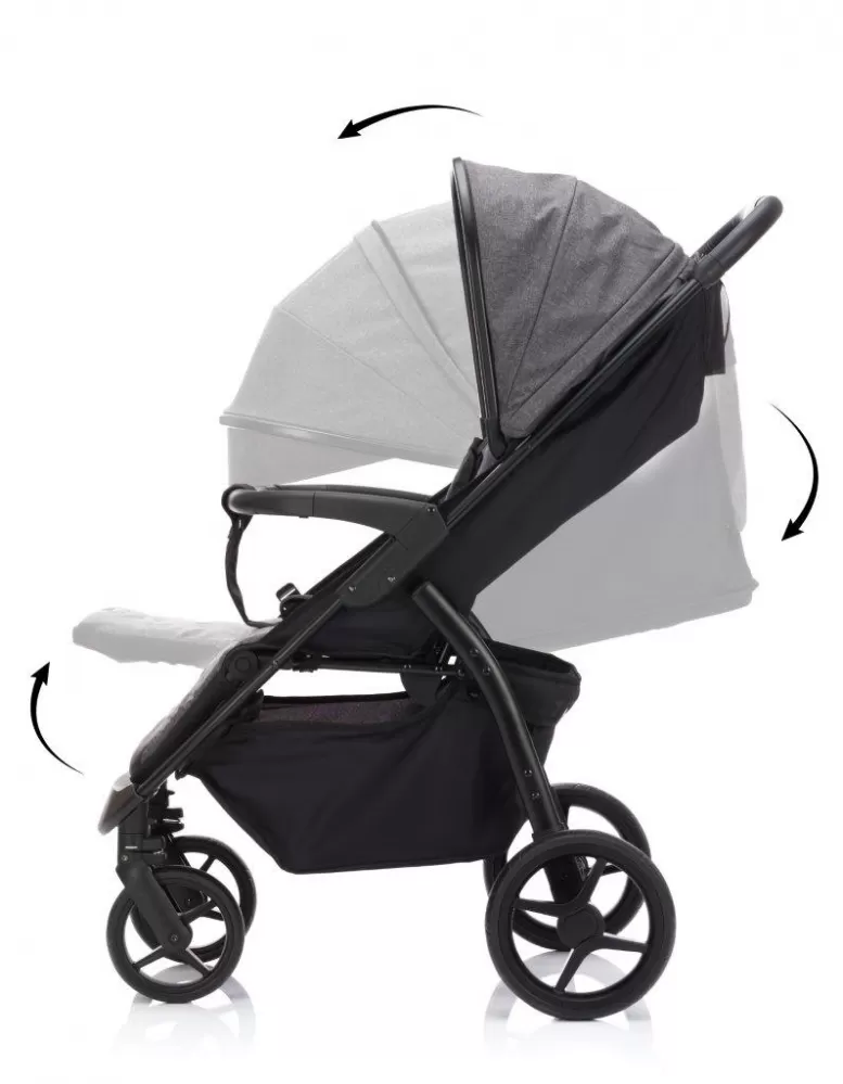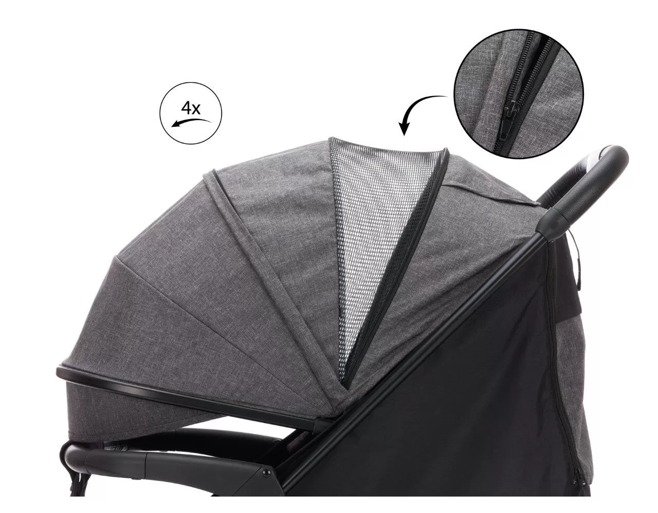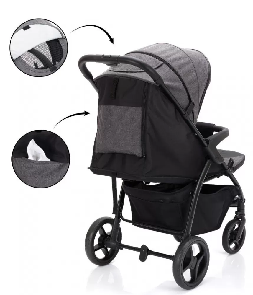 bez ohledu na to, jak je drsný. Díky lehkému rámu je kočárek skvěle ovladatelný a prodlužovací stříška chrání vašeho malého miláčka před přílišným sluncem, větrem nebo deštěm. Velká větrací síť na zadní straně kočárku zajišťuje správnou cirkulaci vzduchu i v horkých dnech. Zádová opěrka nastavitelná do 3 poloh a opěrka nohou nastavitelná do 4 pozic se přizpůsobí potřebám vašeho dítěte. S 5bodovým bezpečnostním pásem a odnímatelnou PU koženým madlem jste na cestách vždy v bezpečí. Malým nákupům ani týdenním nákupům nic nebrání, protože ve velkém košíku vždy najdete dostatek místa. Systém skládání jednou rukou se velmi snadno používá a kočárek lze složit během okamžiku. Díky své kompaktní skládací velikosti se bezpečně vejde do každého kufru auta.
