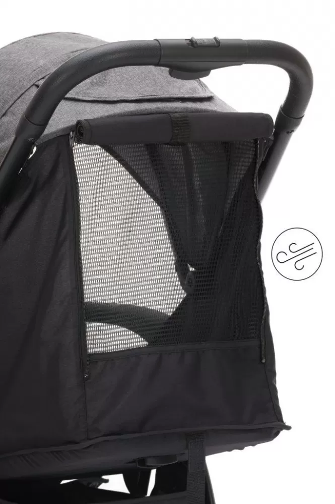 Velká větrací síť na zadní straně kočárku zajišťuje správnou cirkulaci vzduchu i v horkých dnech. .