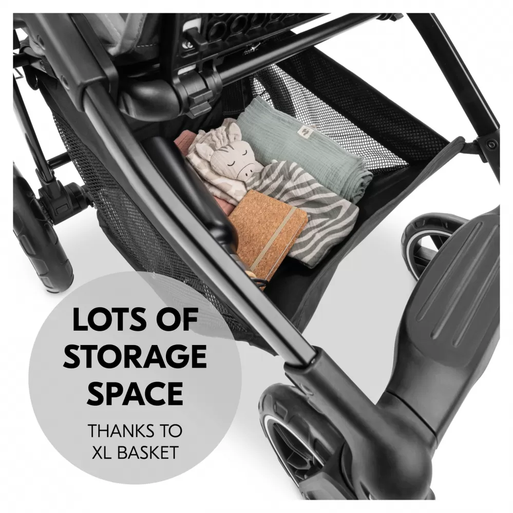 Hračky, potřeby na přebalování, svačinky: i na krátkém výletě potřebují děti spoustu věcí! Nebo byste si chtěli vyrazit na nákupy? Do XL košíku pod sedadlem se vejde vše potřebné.