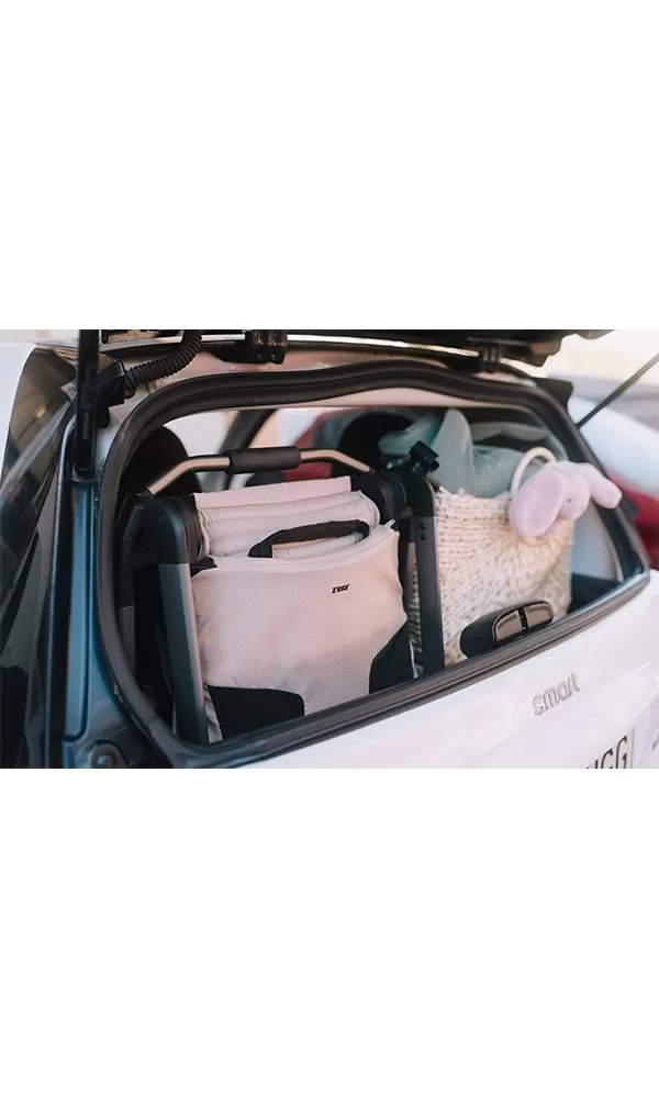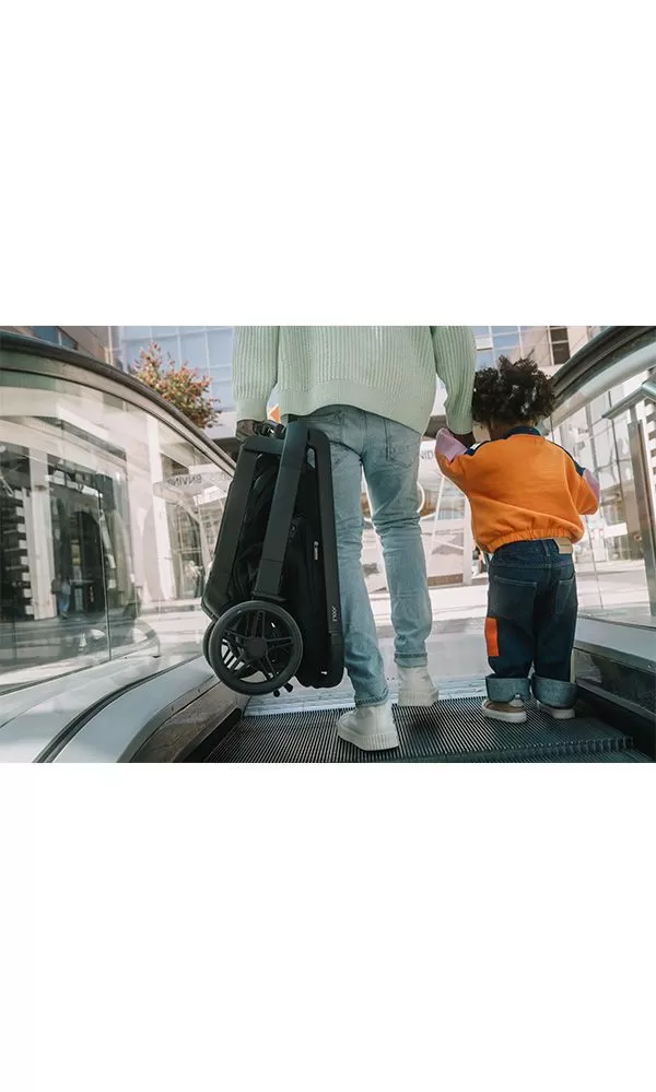 Při skládání si můžete vybrat, zda potřebujete, aby sedátko směřovalo směrem k vám, a nebo ven směrem do světa. Přenositelnost a lehkost kočárku je klíčová, a proto je zde praktický popruh na přenášení. Můžete si ho přehodit přes rameno a vyjít po schodech s oběma rukama volnýma. Víme, že hmotnost s pouhžými 9 kg oceníte s úsměvem na vaší tváři. Jsme jedni z nejlehčích v segmentu kompaktních kočárků!
