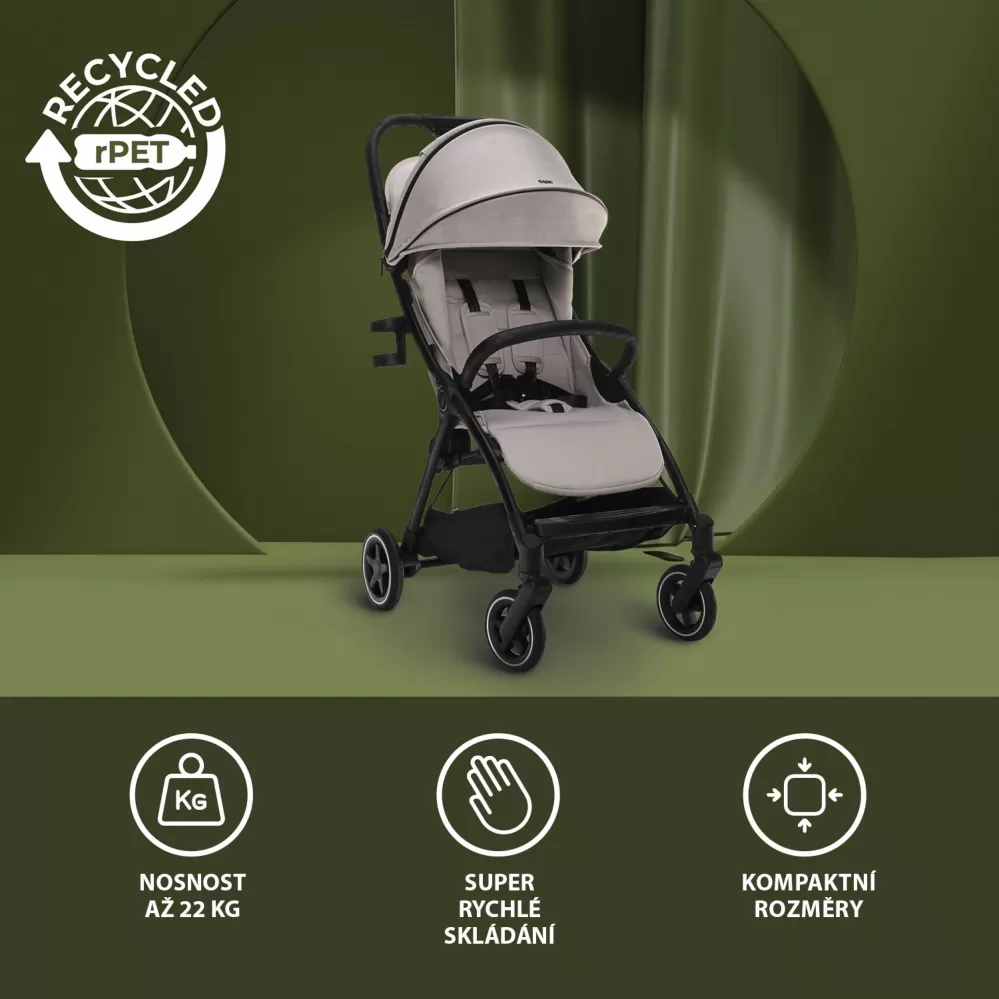 Ale to, co opravdu odlišuje Quiq 2 z kolekce PURE ESSENTIALS, je jeho závazek k udržitelnosti. Každý kočárek z naší kolekce PURE ESSENTIAL je příkladem, jak můžeme činit pozitivní kroky k ochraně naší planety. Látky použité na kočárku Quiq 2 jsou vyrobeny z recyklovaných PET lahví, což snižuje množství plastového odpadu a podporuje udržitelnou módu. Tímto způsobem Quiq 2 nejen že poskytuje bezpečný a pohodlný prostor pro vaše dítě, ale také přispívá k lepší budoucnosti pro všechny generace.