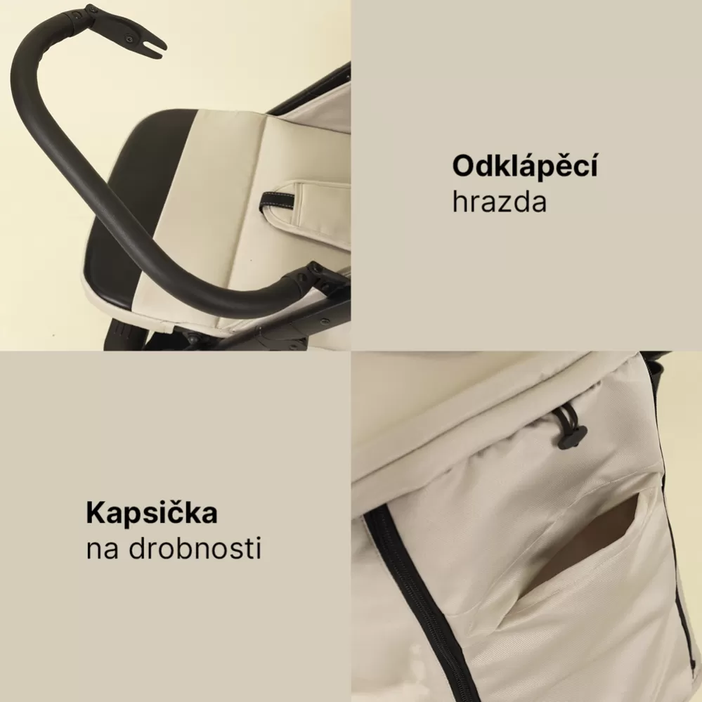 Zopa Moya myslí i na detaily – kapsička na drobnosti, odklápěcí hrazda pro snadný přístup k dítěti, ventilace v zadní části kočárku pro lepší proudění vzduchu. Při skládání nezabírá téměř žádné místo a snadno se vejde i do menšího kufru auta.