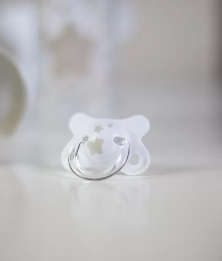 Dudlík svým inovativním tvarem motýlka souzní s drobným obličejem miminka, přičemž přichází do minimálního kontaktu s jeho jemnou a citlivou pokožkou.