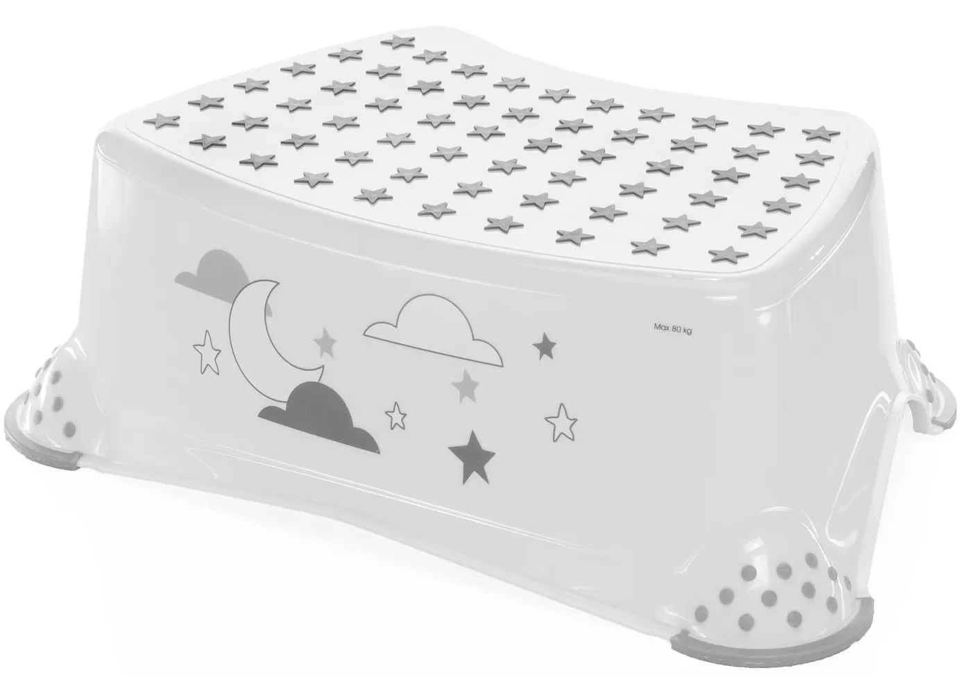 Stupínek pro malé děti k umyvadlu a k WC s protiskluzovou úpravou pomáhá bezpečně si osvojovat základní hygienické návyky.