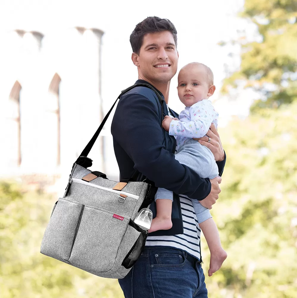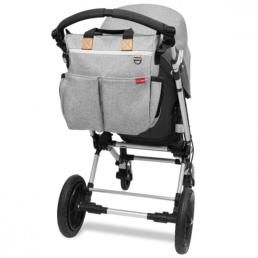 Oddělené kapsy umožňují větší přehlednost - celkem 10 praktických kapes. Tašku lze pohodlně zavěsit na kočárek nebo ji nosit volně přes rameno či v ruce. Obsahuje patentované "Shuttle Clips", díky kterým lze ramenní popruh snadno odepnout nebo nechat na tašce - dle vašeho vkusu. Odepněte menší přezku, obtočte pás kolem rukojeti kočárku a zajistěte. Větší sponou lze odepnout ramenní popruh. Protiskluzové popruhy na kočárek. Součástí boční kapsa na láhev a kapsa na mobilní telefon. Kapsy se zapínají na magnety nebo zipy. Uvnitř tašky je kontrastní podšívka, díky které vše lehce najdete. Taška dále obsahuje polstrovanou přebalovací podložku.