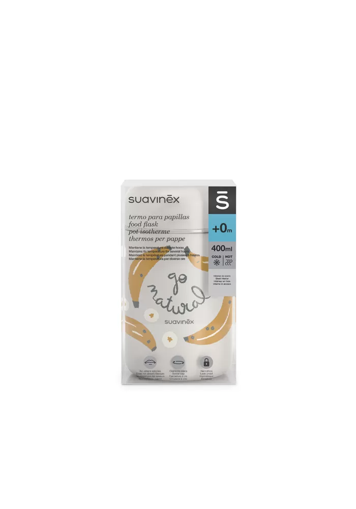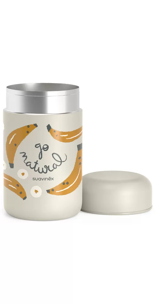 Termoska na příkrmy řady GO NATURAL značky Suavinex umožňuje přepravovat pyré nebo pevné potraviny - uchovává teplotu po dobu až 6 hodiny. Je velkým pomocníkem při výletech s dětmi ven nebo při přípravě příkrmů předem pro noční krmení. Teplota se nepřenáší na povrch nádoby.
