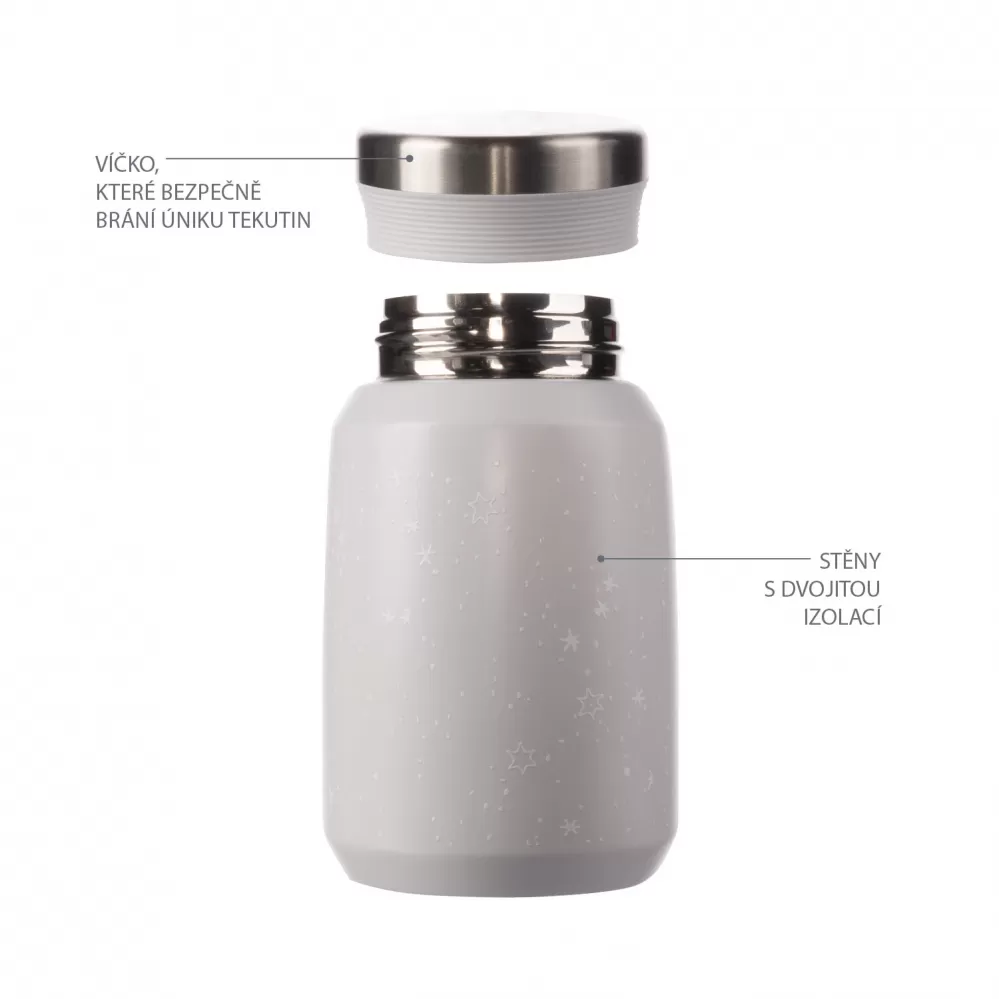 Kvalitní termoska na jídlo a příkrmy o objemu 500 ml uchovává horké jídlo až 12 hodin, studené až po dobu 24 hodin. Je vyrobena z kvalitní nerezové oceli, která je odolná vůči korozi. Těsné víčko zajišťuje, že termoska neprotéká. Díky vakuové izolaci se termoska při naplnění horkým obsahem nezahřívá z venku.
