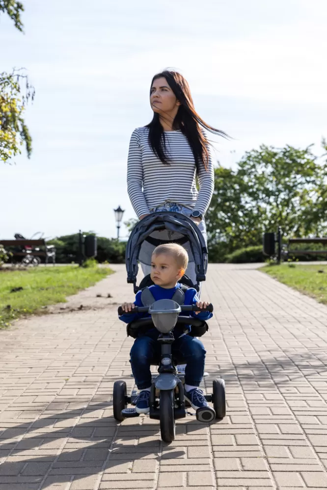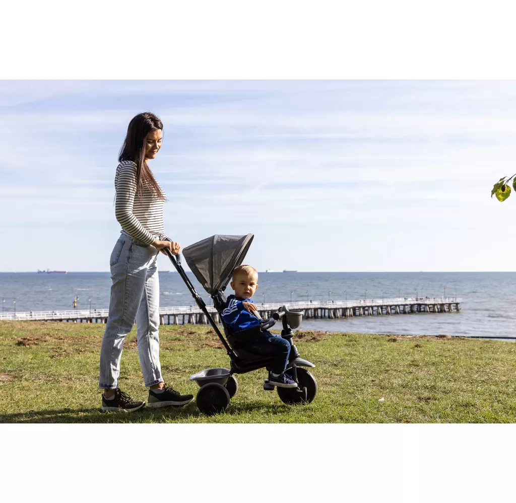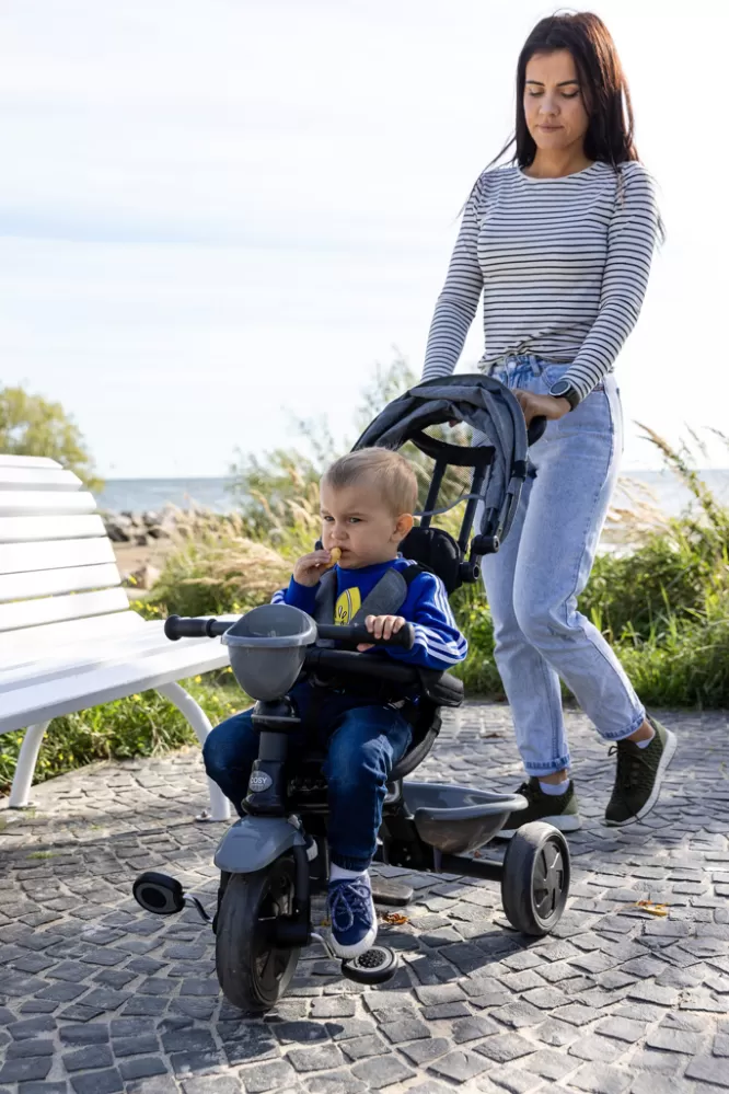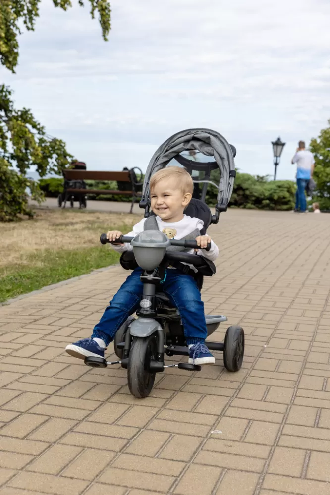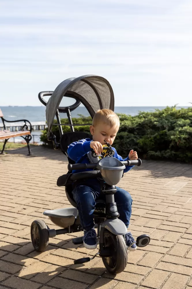 Německá společnost QPlay GmbH byla založena v roce 2016 a během své krátké existence dokázala expandovat do více než 50-ti zemí. Jejich výrobky se vyznačují vysokou kvalitou, splňujíce a převyšujíce všechny oficiální normy schválené testovacími laboratořemi. Qplay patentovaná technologie manévrování je navržena do posledního detailu pro pohodlí rodičů. Výsledkem jsou pokročilé, elegantní tříkolky, které se řídí hladce a snadno. Jsou navrženy tak, aby byly intuitivní a snadno se používaly. Přidejte k tomu inteligentní funkční design a uvidíte, jak to jde úžasně dohromady. Díky všem těmto věcem získává Qplay již téměř desetiletí stále nová a nová ocenění v tomto odvětví. Tříkolka QPlay Cosy 4 v 1 roste spolu s vaším děťátkem od 10 do 72 měsíců. Přemění se z tříkolky s řidítky ovládané rodičem na samostatnou tříkolku. Jedinečné odnímatelné a nastavitelné části zajistí, že vaše děťátko bude mít tříkolku pro každou fázi vývoje. Jak vaše dítě roste, můžete měnit opěrky na pedály, upravovat nebo odstraňovat rodičovskou rukojeť a opěrku zad podle potřeby. Tříkolka QPlay Cosy 4 v 1 se vyvíjí ve 4 stupních, aby se vašemu dítěti snáze šlapalo do pedálů. Vlastnosti: - Váhový limit dítěte: 25 kg - Hmotnost konstrukce: 7,0 kg - Bezpečnost: 5-bodový systém připoutání - Výškově nastavitelná rodičovská řídítka - Sklopná středová opěrka nohou - Kolečka z EVA absorbující nárazy - Markýza s ochranou proti slunci UPF30 - Zadní nožní brzda, která zajistí, že tříkolka zůstane na místě při parkování - Vybaven předním košíkem na láhve - Vybaven zadním košem na hračky a tašky