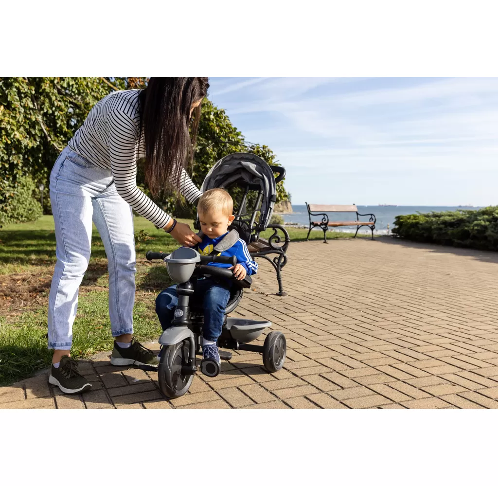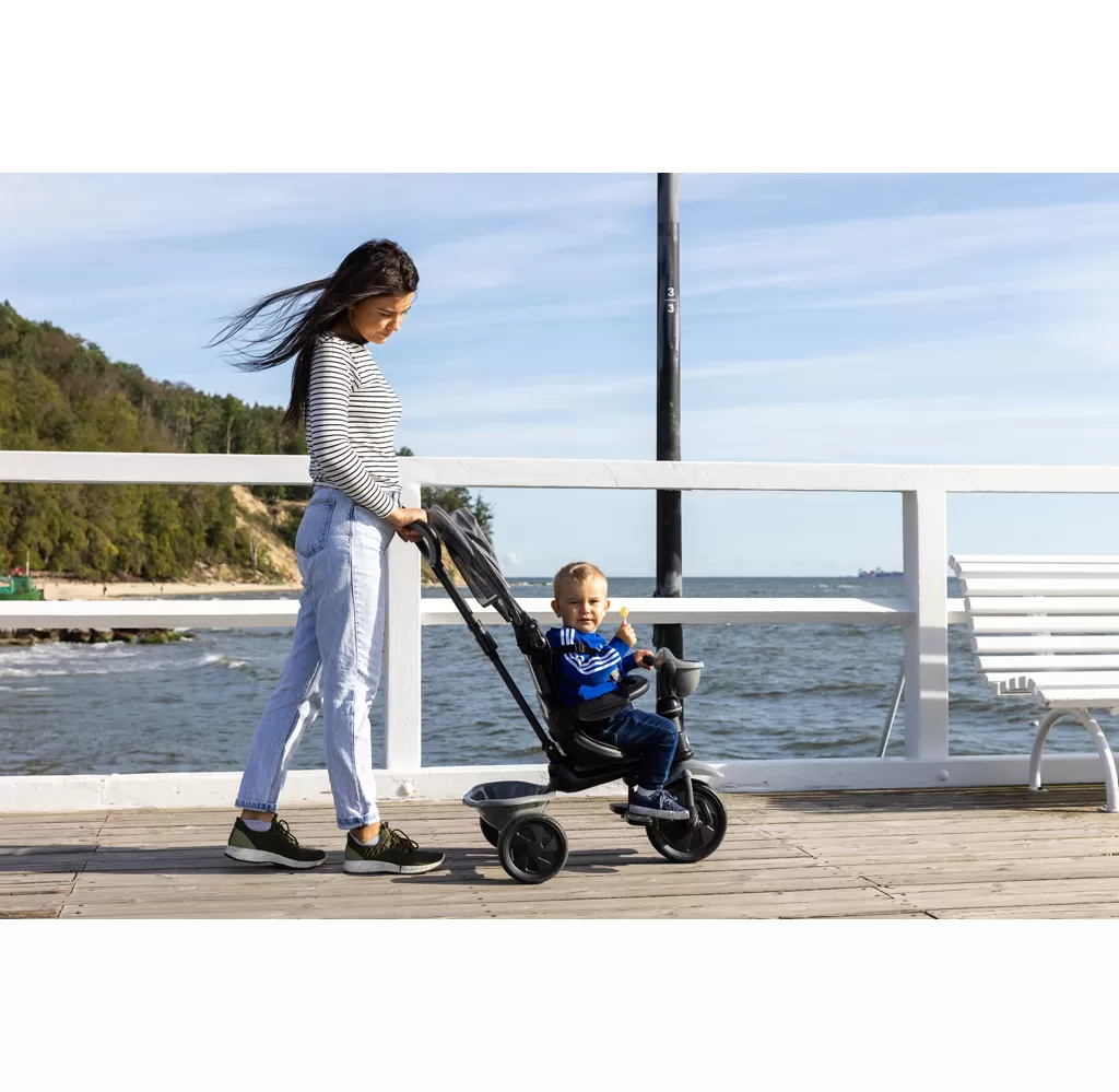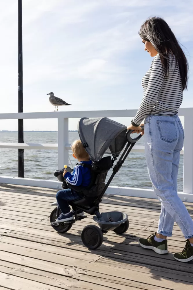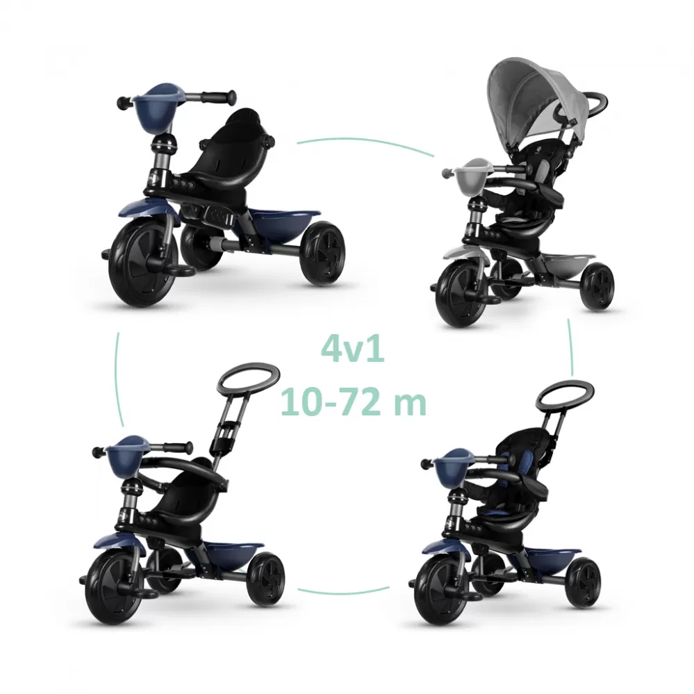 Německá společnost QPlay GmbH byla založena v roce 2016 a během své krátké existence dokázala expandovat do více než 50-ti zemí. Jejich výrobky se vyznačují vysokou kvalitou, splňujíce a převyšujíce všechny oficiální normy schválené testovacími laboratořemi. Qplay patentovaná technologie manévrování je navržena do posledního detailu pro pohodlí rodičů. Výsledkem jsou pokročilé, elegantní tříkolky, které se řídí hladce a snadno. Jsou navrženy tak, aby byly intuitivní a snadno se používaly. Přidejte k tomu inteligentní funkční design a uvidíte, jak to jde úžasně dohromady. Díky všem těmto věcem získává Qplay již téměř desetiletí stále nová a nová ocenění v tomto odvětví. Tříkolka QPlay Cosy 4 v 1 roste spolu s vaším děťátkem od 10 do 72 měsíců. Přemění se z tříkolky s řidítky ovládané rodičem na samostatnou tříkolku. Jedinečné odnímatelné a nastavitelné části zajistí, že vaše děťátko bude mít tříkolku pro každou fázi vývoje. Jak vaše dítě roste, můžete měnit opěrky na pedály, upravovat nebo odstraňovat rodičovskou rukojeť a opěrku zad podle potřeby. Tříkolka QPlay Cosy 4 v 1 se vyvíjí ve 4 stupních, aby se vašemu dítěti snáze šlapalo do pedálů. Vlastnosti: - Váhový limit dítěte: 25 kg - Hmotnost konstrukce: 7,0 kg - Bezpečnost: 5-bodový systém připoutání - Výškově nastavitelná rodičovská řídítka - Sklopná středová opěrka nohou - Kolečka z EVA absorbující nárazy - Markýza s ochranou proti slunci UPF30 - Zadní nožní brzda, která zajistí, že tříkolka zůstane na místě při parkování - Vybaven předním košíkem na láhve - Vybaven zadním košem na hračky a tašky