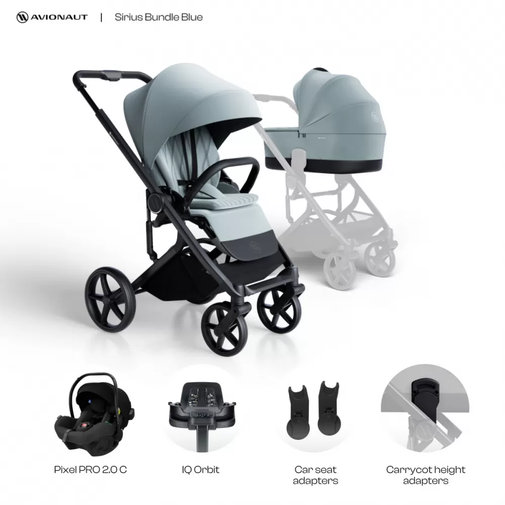 obsahuje: dvojkombinaci Avionaut Sirius & adaptéry na autosedačku ZDARMA & nejlehčí vajíčko na trhu Avionaut PIXEL PRO 2.0 C & otočnou základnu Avionaut IQ Orbit